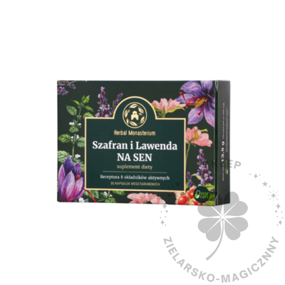 Szafran i Lawenda na Sen to suplement diety, w którego skład wchodzą starannie dobrane ekstrakty roślinne i melatonina. Preparat działa wspomagająco w stanach zaburzeń rytmu snu. Ma kompleksowe działanie – ułatwienia zasypiania, obniża poziom napięcia i stresu, oraz ułatwia zrelaksowanie i wpływa na poprawę jakości snu. Nie zawiera zbędnych sztucznych dodatków, takich jak barwniki i konserwanty, substancje słodzące.